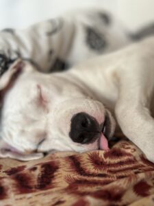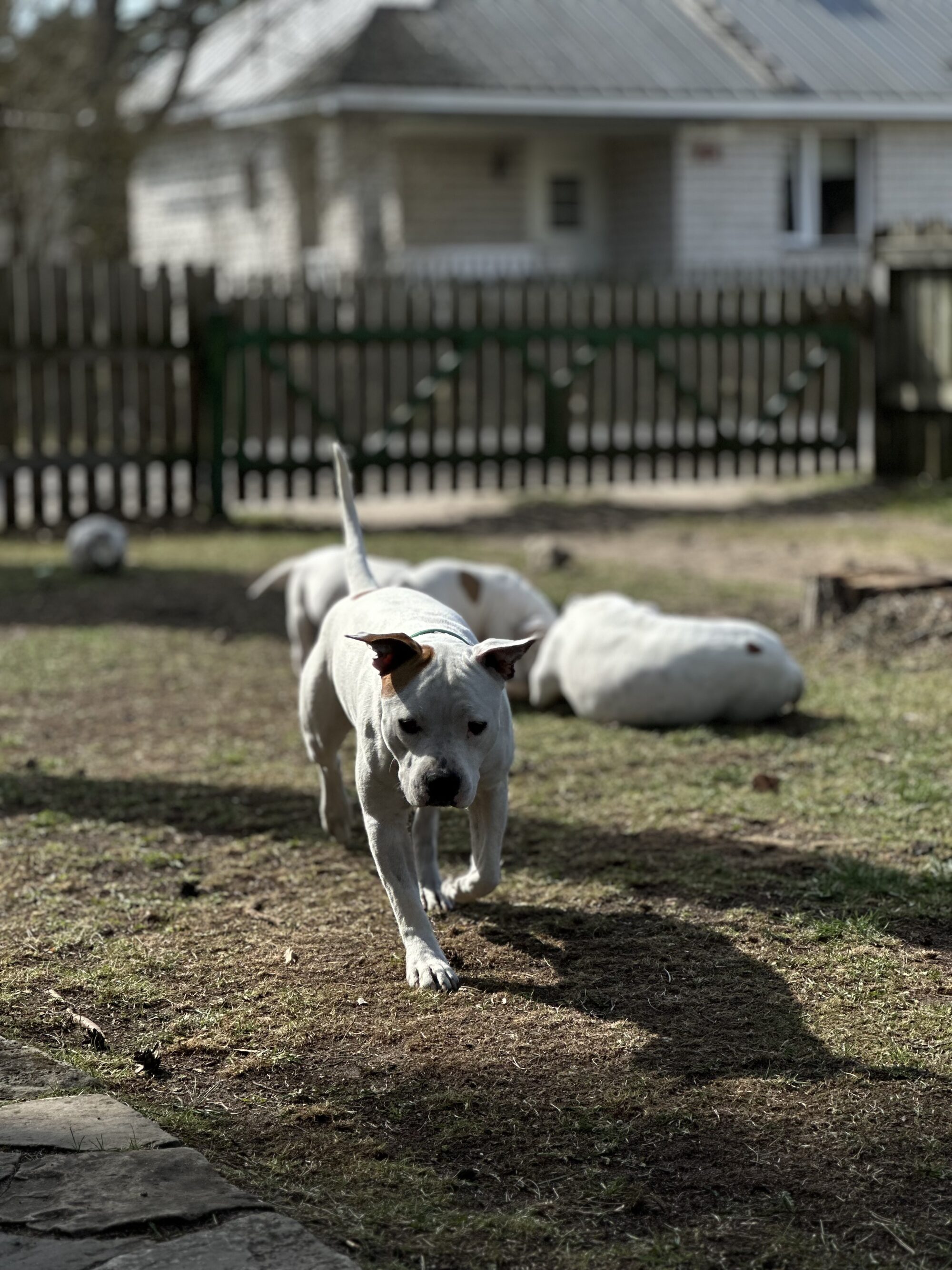Nüüd ongi majas kolm valget koera. Kunagi unistasin, et mul oleks minu hobuse karjamaa nurgas väike maja ja trepil istuksid kaks musta dobermani. Nüüd on maja aga Haapsalus ja trepil istuvad kolm valget amstaffi💤